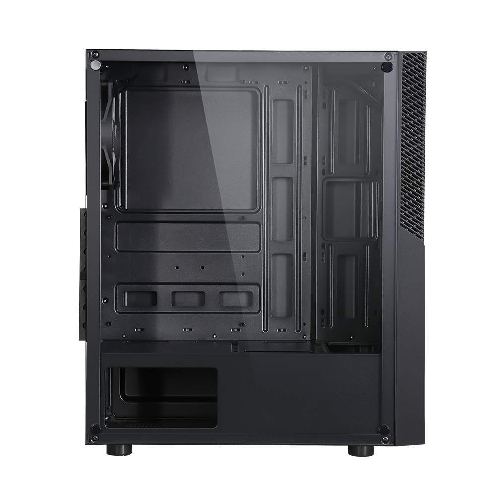 Un panel lateral de vidrio templado de tama帽o completo muestra el interior de tu equipo con claridad y estilo. El panel frontal minimalista est谩 acentuado con una tira ARGB din谩mica, que a帽ade un brillo personalizable que realza la identidad visual de tu configuraci贸n.