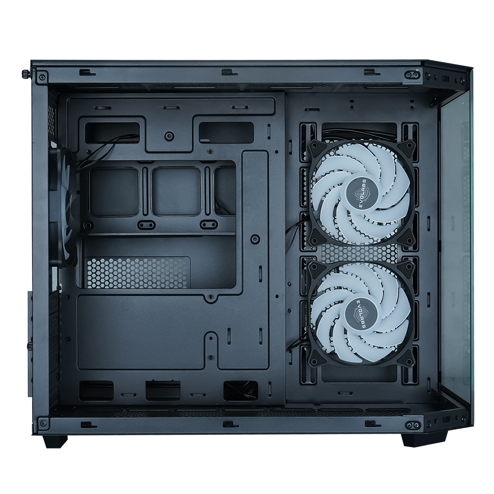 Con vidrio templado en la parte frontal, el panel lateral y un borde de esquina, esta caja ofrece una vista panorámica del hardware interno, mostrando los componentes RGB de forma impactante. Un filtro de ventilación inferior garantiza un flujo de aire limpio y protege contra la acumulación de polvo.